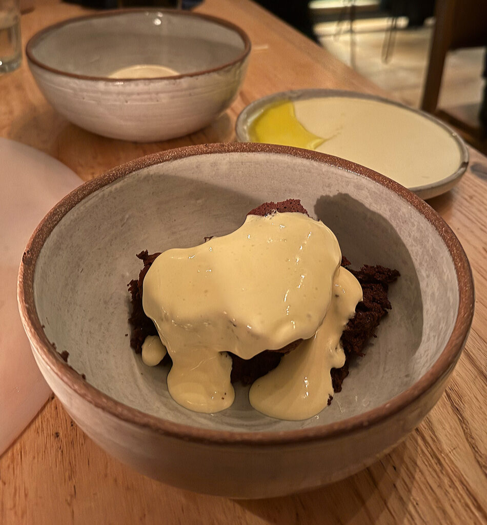 Add in the anchovies, with their concentrated brine and umami, and one’s enjoyment only grows. The olive oil that sits below the fish forms a nice bonus, imbuing the crumb with sharper, fruitier notes than the butter. The salt content of the anchovies also plays well with the fontina, which arrives in the form of a hearty slab (and whose pronounced grassy character perfectly matches the complexity of the bread). Overall, this makes for an opening salvo of real generosity and value: one that fittingly anchors the restaurant’s “wine bar” identity while simultaneously tantalizing those who are preparing to tuck in for a more elaborate meal.