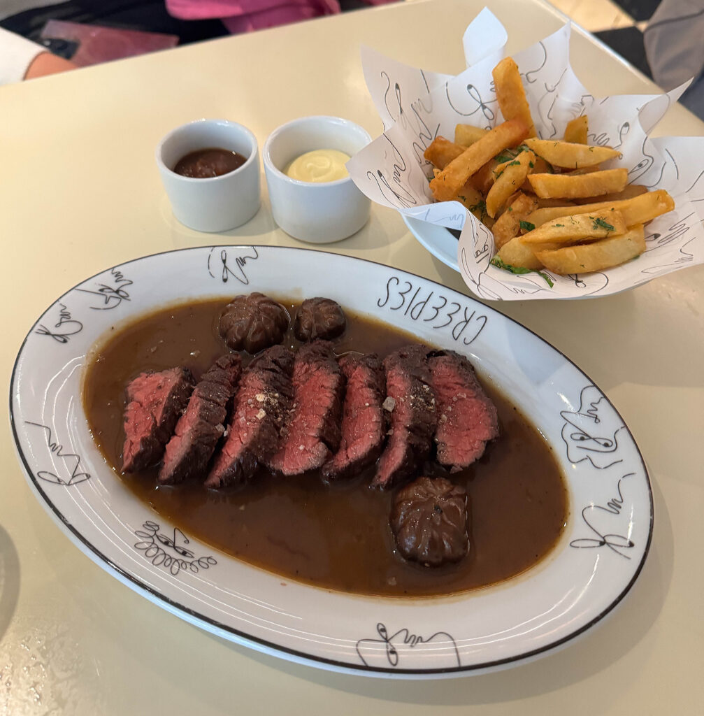 On the palate, the beef itself ticks all the boxes: being soft and juicy with a subtle, pleasing chew and just enough salt to unleash its latent flavor. The accompanying sauce does, indeed, smack of sharp pepper flavor (particularly on the finish); however, I find that its character is somewhat muted on the midpalate. Yes, while I suspect the recipe used here is unconventional, I miss the concentrated notes of stock, shallot, and mustard that might further enhance the steak’s savory character. The mushrooms, in contrast, are so plump and pronounced in their umami that I am left wishing there were more of them on the plate. If every bite of the meat was charged with that same intensity, we’d have a winner. Otherwise, as it stands, this preparation ranks as a merely good—not great—slab of beef in a city that has no shortage of exceptional examples.