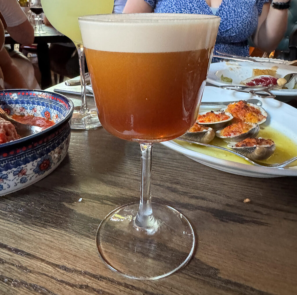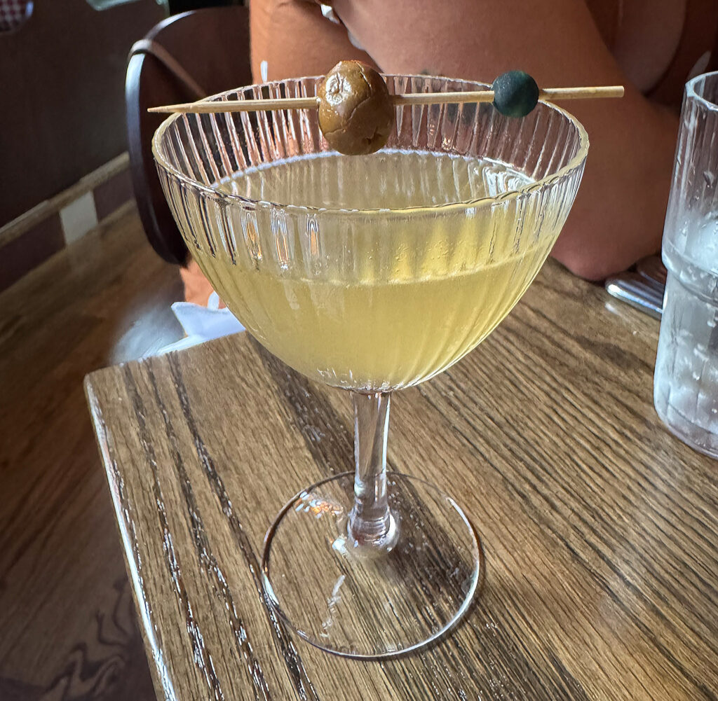 Under the “Specialty” section, a “Calabrian Dirty Martini” ($17)—made with chili vodka, a tomato-olive brine, then topped with an ‘nduja- and gorgonzola-stuffed olive—delivers a potent, appreciably salty imbibing experience with fruity depth and lasting heat on the finish. The stuffed olive, for all the fuss, comes out looking and tasting a little sad. However, I’ve sampled this drink a couple of times now and would continue to order it (though the team will also happily tailor a martini to one’s exact specifications).