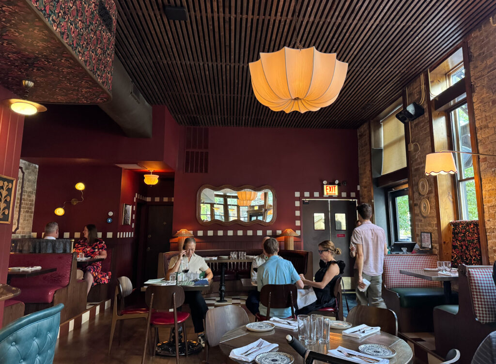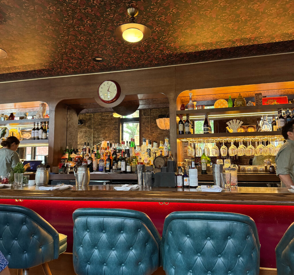Stepping into the restaurant, I am struck by a sense of bustle: filled seats, full plates, an energetic din (punctuated by the synchronized shaking of martinis), and the trace of self-satisfaction that comes from snagging such a difficult reservation. The Tarantino’s aesthetic, characterized by exposed brick, the patterned tin ceiling, wine bottles on the wall, and some lighter tones of wood, has clearly been reimagined—though not entirely destroyed from a structural perspective.