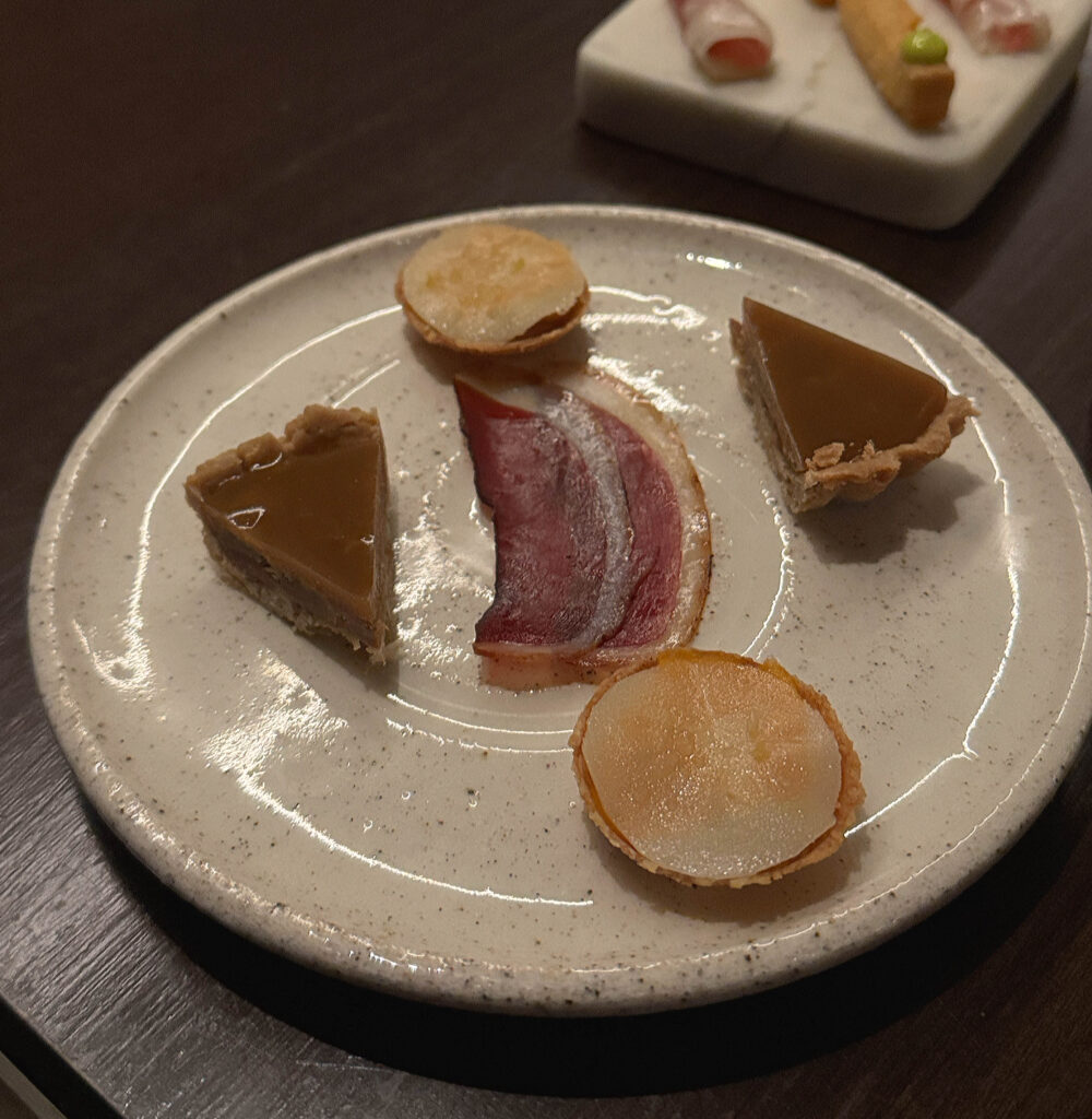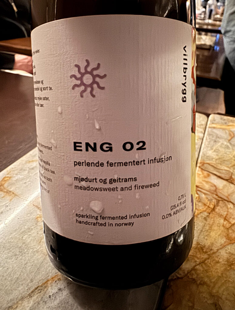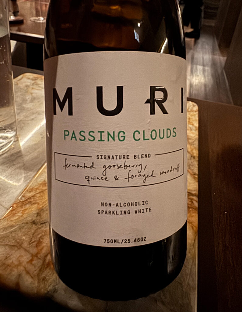 Tonight, I note that quite a few customers have opted for the “Low ABV Pairing” ($110), which comprises a sparkling juice, a kombucha, fermented infusions, non-alcoholic wine, and non-alcoholic sake. Despite the reliance on readymade products, the selection is fairly unique and enjoyable for the price. In terms of quality, I place the pairing just behind Smyth’s—whose sourcing is a bit better (though they eventually aim to produce 40% of offerings in-house)—and well ahead of Oriole’s—which, no longer featuring the work of Julia Momosé, has so far struggled to craft its own appealing brews.