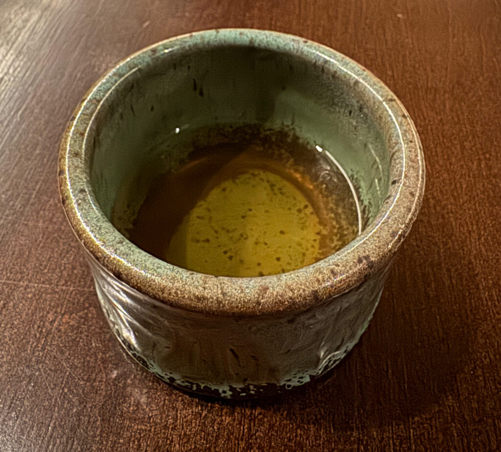 Shortly after guests are seated, a simple cup of “Mushroom Tea” arrives. Think of it like Oriole’s own tea (or Smyth’s amazake): an opening flavor impression that may also help you warm up from the cold. While it’s easy to imagine this kind of earthy broth going wrong, each sip is beautifully salted and replete with savory depth. Yes, as the mushroom imparts its long, pleasing finish, one is left with no doubt that Feld has dialed in its seasoning.