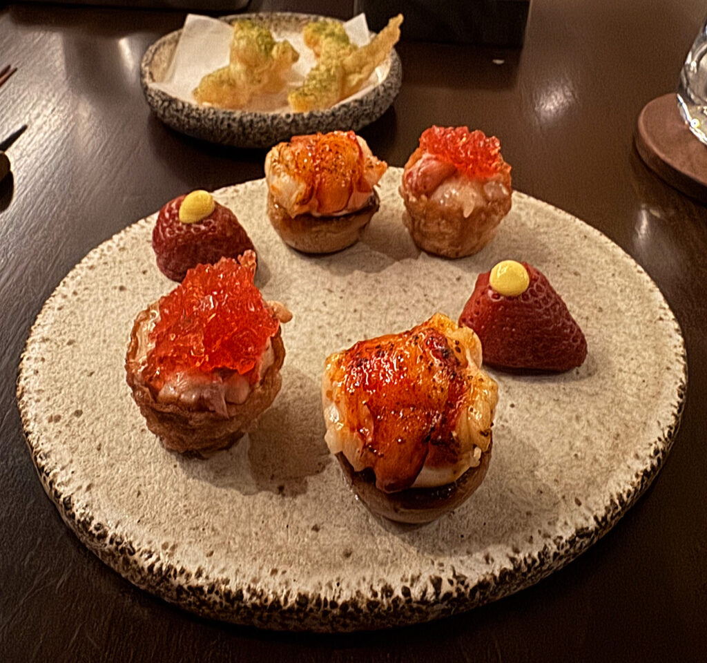 A “Lobster Knuckle Salad,” served in a crusty vessel (kind of like a fluffier pie tee), is simultaneously crunchier and more soft, moist, and melty than its compatriot. The flavor here also shows some enjoyable heat on the finish. Nonetheless, it ranks at about the same level: tasty but not quite memorable.