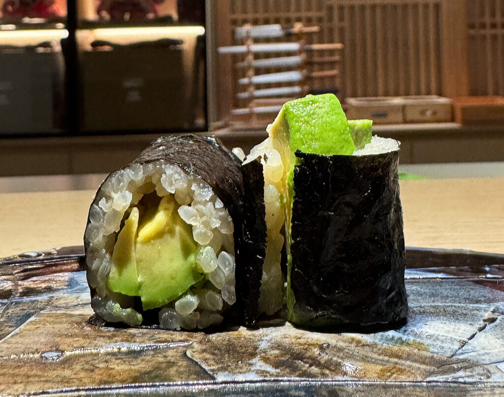 The “Ōra King Salmon,” “Smoked Ocean Trout,” “Kinmedai,” “Isaki,” “Buri,” “Barracuda,” “Kohada,” “A5 Wagyu,” “Sablefish,” and “Avocado Roll” land in the following stratum: very good—even great—preparations I would always be happy to sample again (but that just failed to elicit an extra degree of emotion).