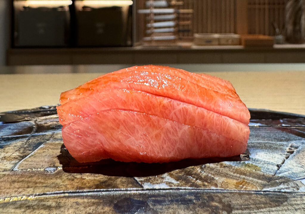 At this stage (right about the midpoint of the meal), we come to Villa’s biggest test: the servings of tuna on which many diners—no matter their degree of experience in this genre—judge the ultimate quality of an omakase. Given how frequently Phan achieves incredible results with his own examples, these also form essential points of comparison between the two chefs.