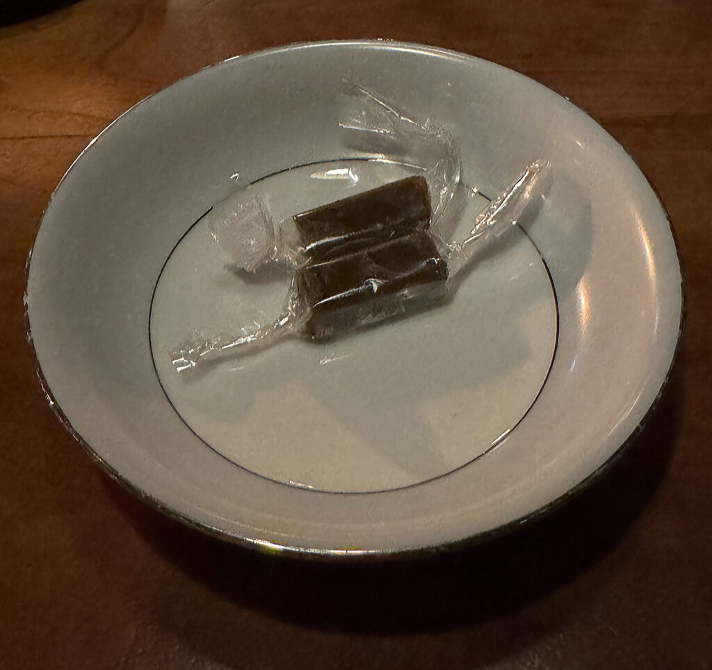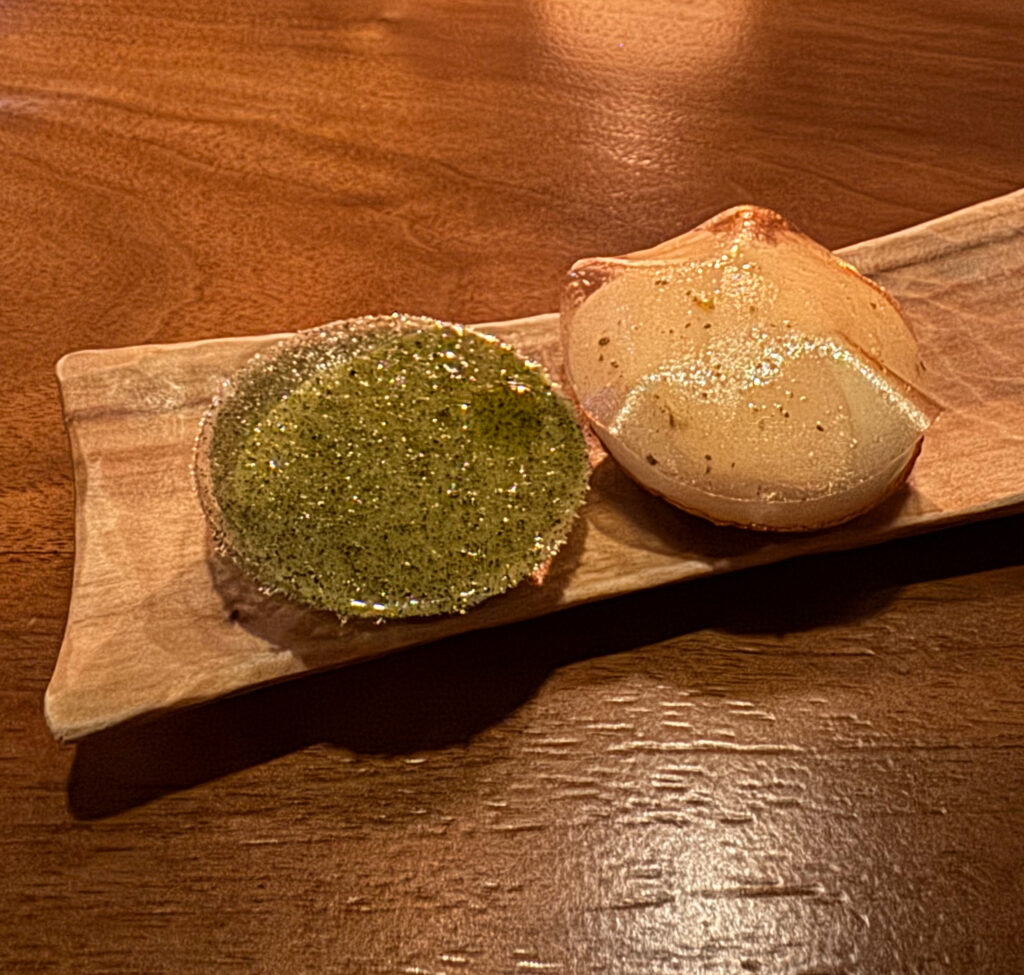 Consumed in the immediate aftermath of the meal, the sticky, briny, umami-charged confections feel like overkill—the hammering home of a sensation (pleasurable, though only strangely so) that has been all but exhausted by the evening’s courses.