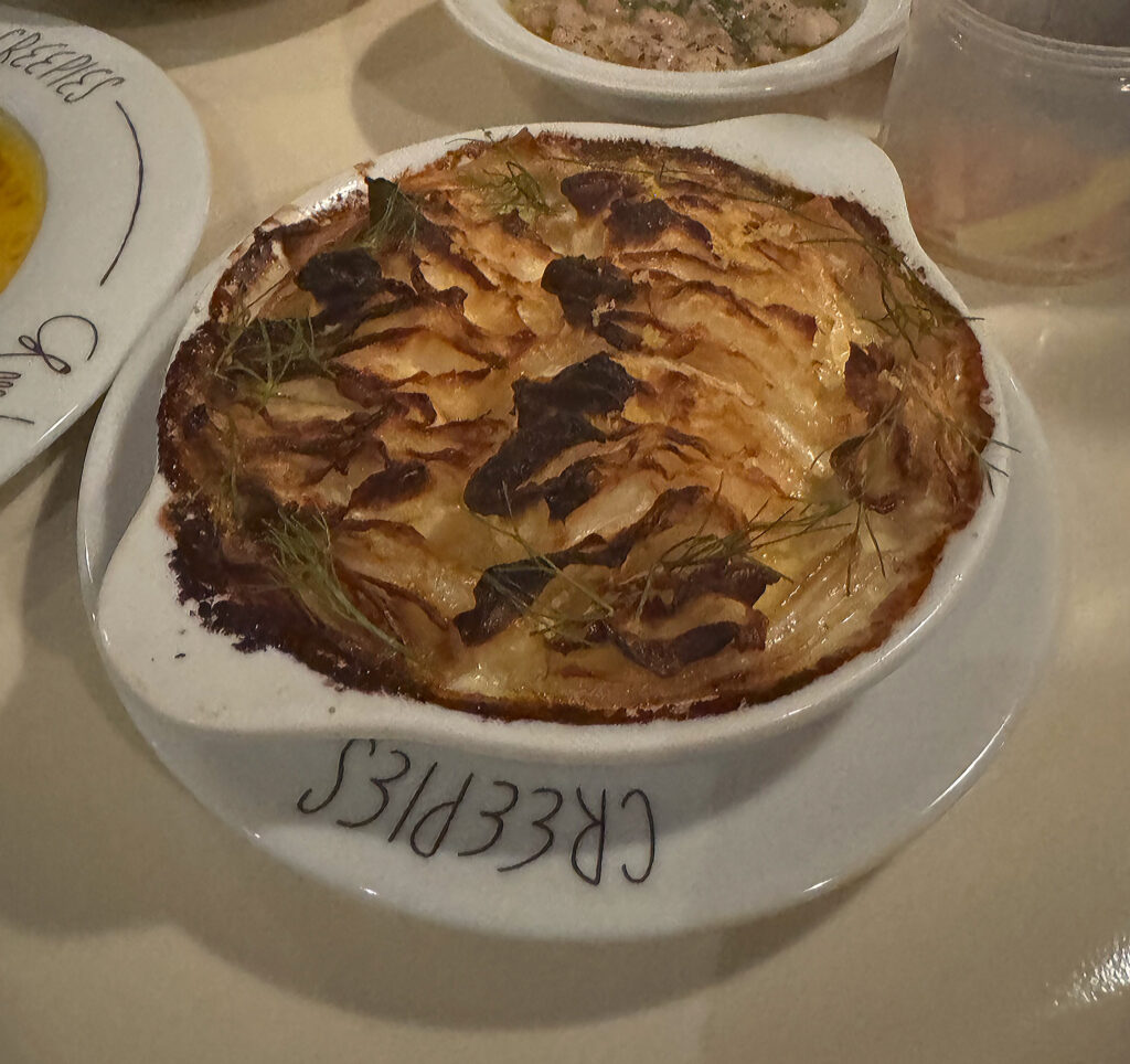 A few of the weak links—like the “Crudités,” “Cod Meunière,” “Little Gem,” and “Celeriac Dauphinois” (insofar as it echoes the “Pommes Ratatouille”)—have also remained consistent, signaling that the kitchen may need to seriously interrogate some of its ideas or techniques. Yet, throughout any and all of the miscues tonight, I can never accuse the team of being lazy or uninspired in what they are aiming for.