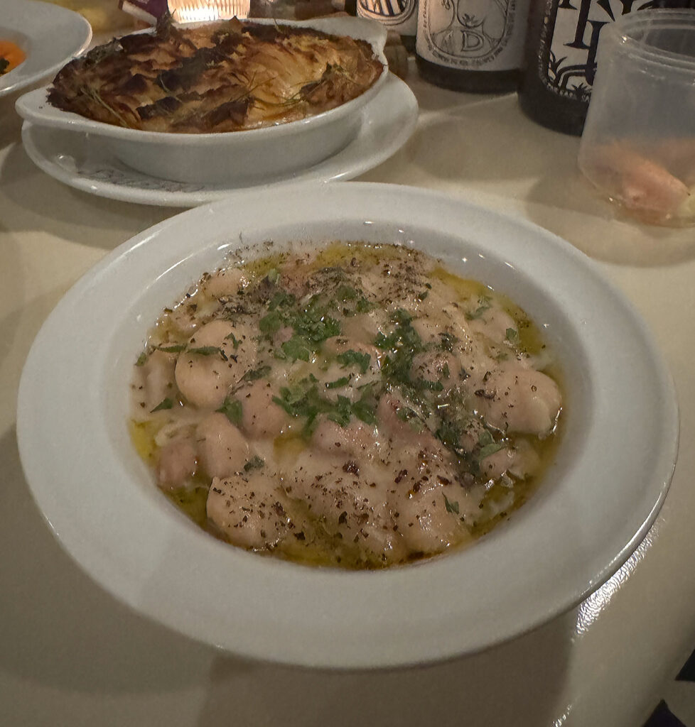 The ”Creamed Cranberry Beans with Fines Herbes” ($10) have replaced a similar preparation made with summer beans (that I vaguely remember trying but, obviously, found forgettable). The present version is impressively tender, a touch gooey, and balanced by enough salt and acid as to taste rather full and satisfying. In short, I would order it again.