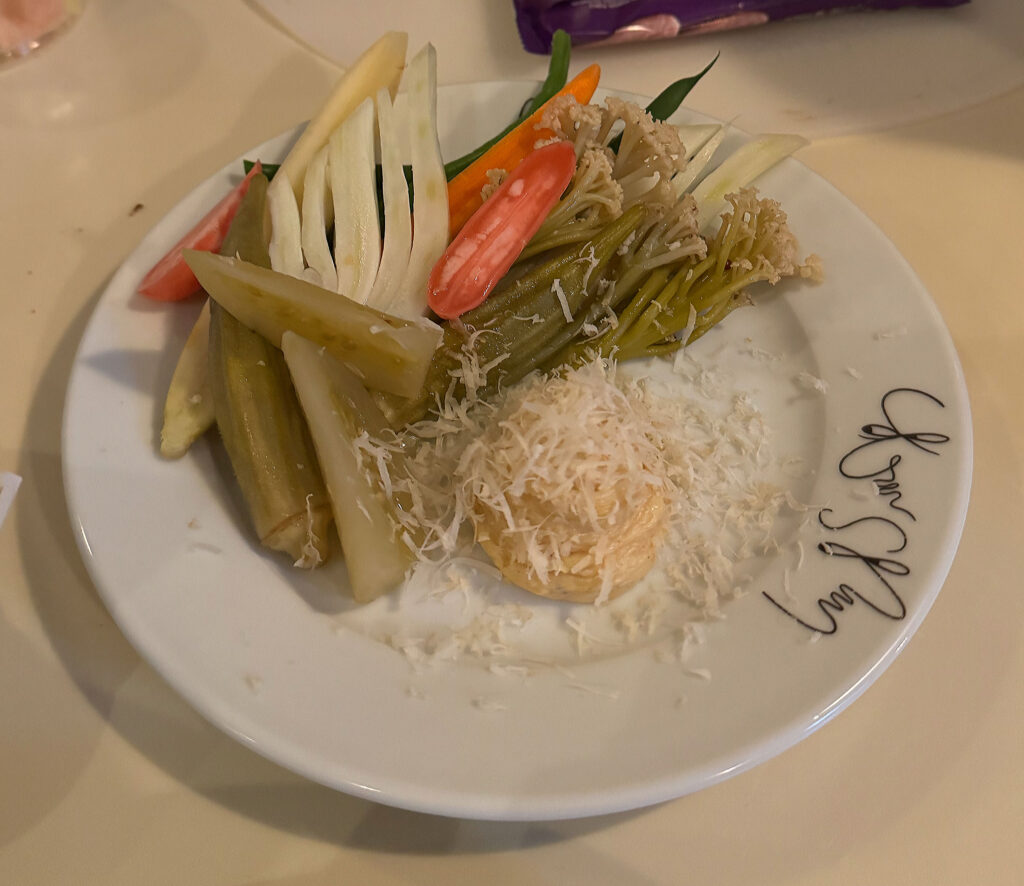 Turning now to the menu, I choose to order 19 of the 23 dishes offered tonight. More particularly, I only choose to excise two of the entrées (“Roasted Chicken,” “Roasted Lamb”) and two of the desserts (“Butterscotch Custard,” “Baguette Soft Serve”) I covered in my last piece.