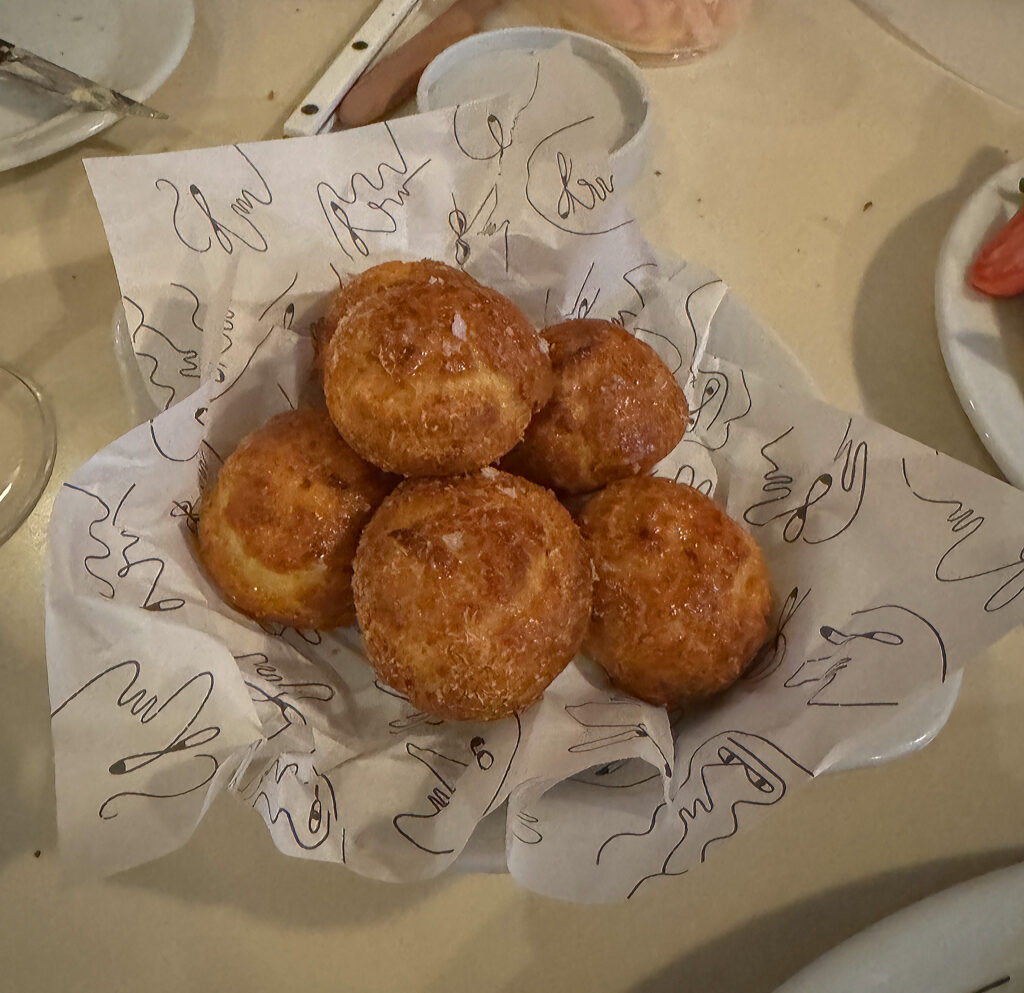 The ”Warm Brie Gougères” ($14) might be the standout of the menu. I’ve definitely ordered it every time I’ve dined at the restaurant. However, I have also pinpointed a lapse in quality from my first encounter (on opening night) through all subsequent versions of the recipe.