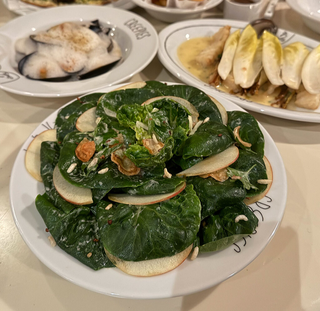 The present version offers a nice enough mélange of soft lettuces, crisp apple slices, and crunchier bits of seed and root. With regard to flavor, the slight sweetness of the fruit is a welcome addition. Nonetheless, the salad strikes my palate as rather bland and underdressed. I think its subtlety is meant to be intentional and a bit subversive, yet it almost seems to abandon everything that’s texturally engaging and bracing about such a construction. I hope, at some point, I am able to understand what the kitchen is going for with this composition.